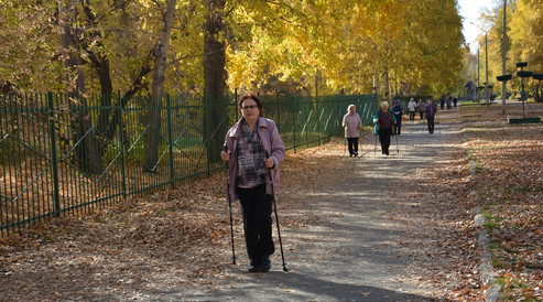 Забег по скандинавской ходьбе среди ветеранов прошел в рамках месячника пожилого человека